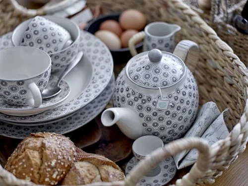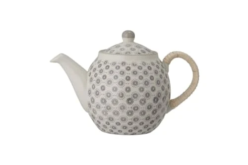 Un style nordique épuré pour une théière aux accents danois. La théière Elsa de Bloomingville est une belle pièce aux accents méditerranéens. Elle est en grès avec une belle impression dans les tons de gris qui produit un effet de relief, et l’anse est en bambou. Elle est parfaite pour servir n’importe quel thé et vient compléter à la perfection votre table si vous souhaitez quelque chose qui soit à la fois fonctionnel et joli. Contient 1200 ml. Informations complémentaires :Théière Elsa, Gris,. Grès, Vigne. Approuvée pour les aliments. .