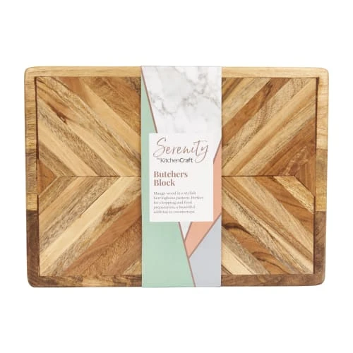 Envie d’une planche à découper épaisse, solide et de très bonne qualité? Optez pour le bloc de boucher en bois de manguier Kitchen Craft et devenez le pro de la découpe! Robuste et solide, ce bloc de boucher est parfait pour la découpe de viande, volaille et autres légumes en tous genres. C’est vous qui décidez. Cette planche est faite à base de bois de manguier naturel et se distingue par ses motifs envoûtants en forme d’épi qui font ressortir les différentes teintes du bois. En plus d’être pratique et élégante, elle se fond partout dans votre cuisine et sur votre table. Découvrez la gamme de produits dérivés Kitchen Craft pour plus d’équipements.