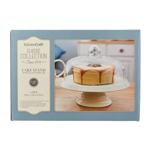 KitchenCraft Présentoire à Gateau En Céramique Avec Dome En Verre Blanc
