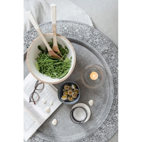 LANADECO Plateau 3 Niveaux Différents Rond Bois De Paulownia Naturel H36cm