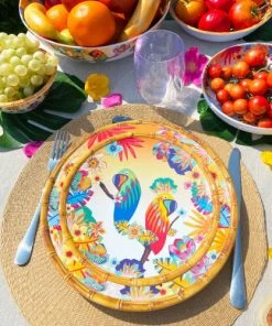 Les Jardins De La Comtesse Petite Assiette En Mélamine Motif Perroquet Sur Dégradé Orange Ø 23 Cm