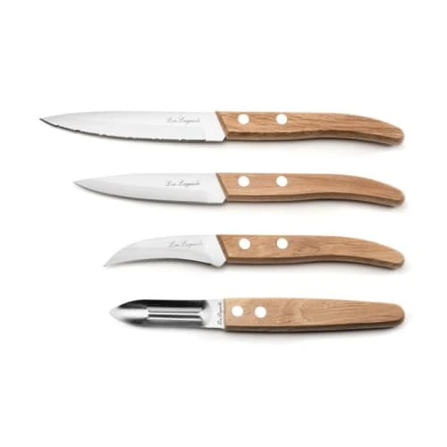 Ensemble de 4 couteaux de cuisine Laguiole de la gamme Forest “Essentiel”. Manche en bois naturel avec rivets en aluminium.La collection Forest de Lou Laguiole est l’allié indispensable de vos préparations culinaires. Rustiques, naturels et pratiques, les couteaux Forest sont les outils du quotidien.Lou Laguiole® signe un design exclusif et traditionnel. Pour concevoir cette authentique gamme de couteaux Laguiole, nous mobilisons tout notre savoir-faire coutelier. Lou Laguiole® est une marque déposée et distribuée exclusivement par Amefa en France et dans le monde.