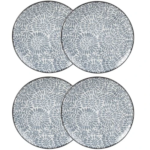 Maisons Du Monde Assiette Plate En Grès Blanc Motifs Graphiques Bleus – Lot De 4