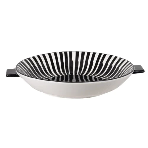 Maisons Du Monde Plat Rond En Grès Rayé Noir Et Blanc
