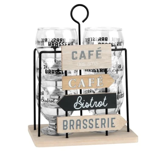 Maisons Du Monde Support En Métal Pancartes Avec 6 Verres Imprimés