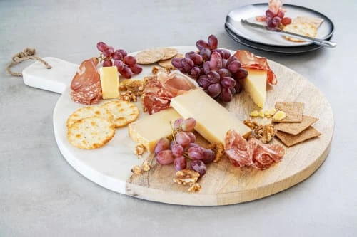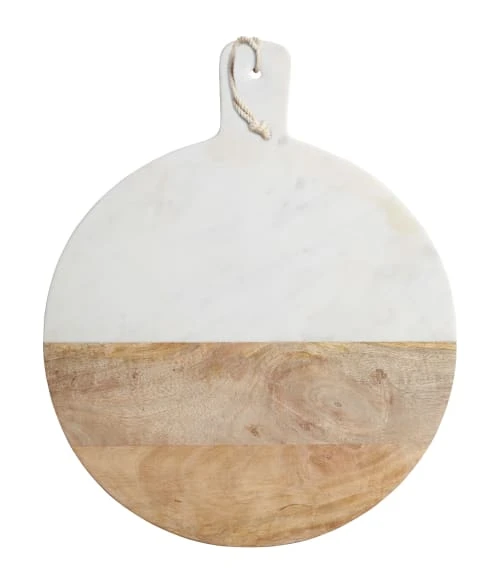 Cette planche de service en bois et en marbre MasterClass saura répondre à tous vos besoins : découper des tranches de pain frais, présenter un assortiment de petits-fours pour l’apéritif ou encore servir vos antipasti et tapas préférés, elle vous accompagnera au quotidien. Vous ne manquerez jamais de place pour servir de délicieuses bouchées grâce à ses dimensions généreuses : 50 x 40,5 x 2 cm. Rangez-la facilement grâce à sa corde de suspension. Garanti 5 ans, ce plateau de présentation fait partie d’une grande gamme de planches à découper et de plateaux de service MasterClass.