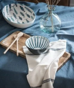 Maisons Du Monde Plat Ovale En FaĂŻence Blanche Motifs Poissons Bleus
