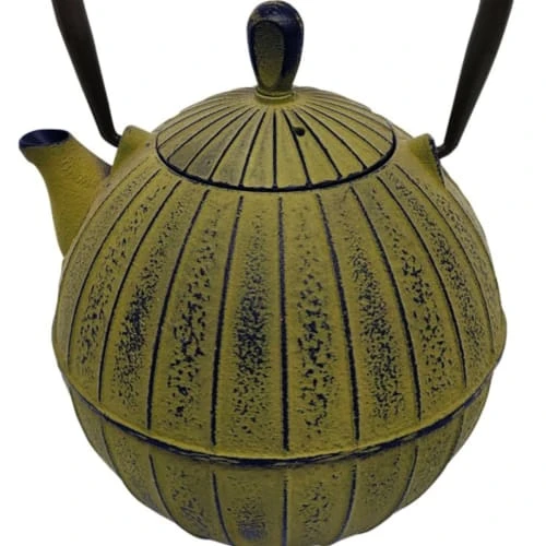 Théière de type japonaise verte en fonte 0.8 litre Fonte Émaillée 0.8 Litre Livrée avec un infuseur Dimensions avec anse : Hauteur 19.5 cm – Largeur 13 cm – Profondeur 12.5 cm Avec son intérieur émaillé, cette théière en fonte est destinée à infuser tous vos thés sans garder leurs arômes en mémoire. La théière en fonte a pour caractéristique de rouiller. Ne vous inquiétez pas trop de la rouille, en effet la rouille de la théière en fonte n’est pas nocive pour la santé humaine.