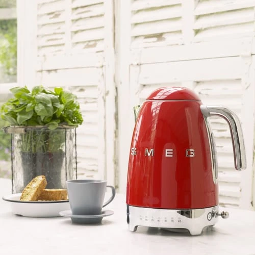 Une bouilloire qui rend chaque moment spécial !base avec connexion à 360°base avec pieds antidérapants comprenant un raccordement électrique et un système de sécurité qui, en l’absence d’eau, interrompt le fonctionnement de l’appareil.ouverture progressivecouvercle à ouverture progressive qui empêche l’évacuation soudaine de la vapeur chaude.filtre anti-calcairefiltre en acier inoxydable amovible et lavable qui retient le calcaire naturellement présent dans l’eau et qui se dépose au fil du temps.7 niveaux de tempÉratureles différents mélanges de thé nécessitent des températures différentes, et la bouilloire à température réglable vous permet de choisir parmi 7 niveaux de température entre 50°c et 100°c pour personnaliser la température de l’eau en fonction du thé sélectionné. fonction maintien au chaudune fonction qui permet de maintenir l’eau à la température choisie pendant 20 minutes.Collection : Années 50 Matière : Inox Couleur : Rouge Longueur : 22.6 cm Largeur : 17.1 cm Hauteur : 27.5 cm Capacité : 170 cl