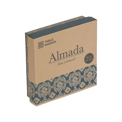 Table Passion Coffret De 4 Assiettes à Dessert 20 Cm En Grès Bleu
