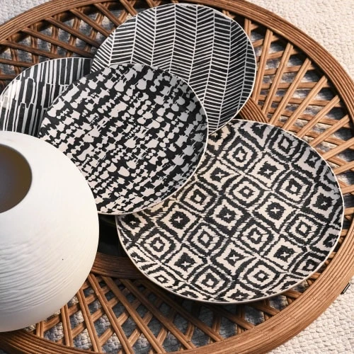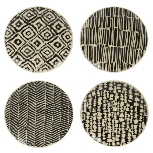 Ce coffret de quatre assiettes vous séduira par ces motifs actuels et design une finition brillante apporte élégance et éclat.Collection : Blacksign Matière : Grès Couleur : Noir Diamètre : 22 cmCompatible Lave-vaisselle Compatible Micro-onde