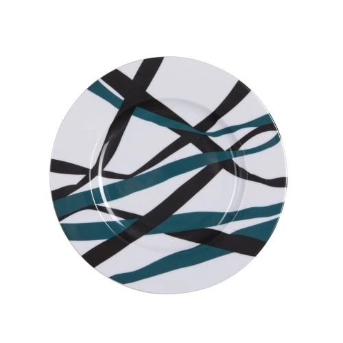 Ces magnifiques assiettes à dessert maestro 21 cm en porcelaine blanche au décor bleu canard et noir apporteront la touche en plus à votre décoration de table.utiles au quotidien, vous ne pourrez plus vous en passer. (lot de 6)Collection : Maestro Matière : Porcelaine Couleur : Blanc Hauteur : 1.6 cm Diamètre : 21 cmCompatible Lave-vaisselle Compatible Micro-onde