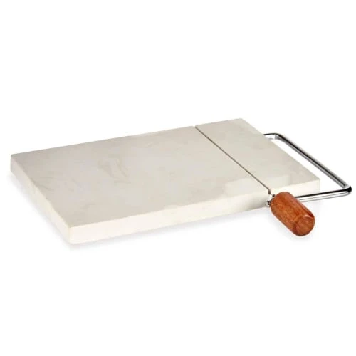 Plateau fromage ou foie gras en marbre blanc avec fil de coupe, idéal pour de belles tranches de fromage ou de foie gras. Dimensions: Hauteur 2.5cm x Longueur 24cm x largeur 21cmCouleur: BlancMatière: Marbre