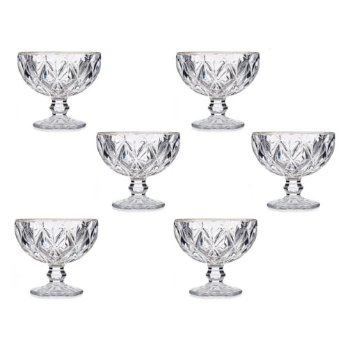 Set de 6 Coupes à glace élégantes en verre et bordure dorée.