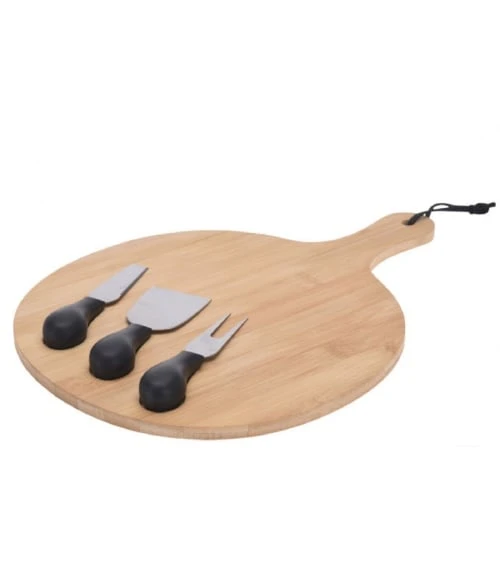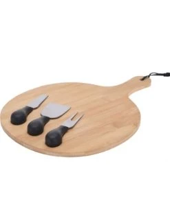 Wadiga Plateau à Fromages Rond En Bambou Et Ses 3 Couteaux De Service